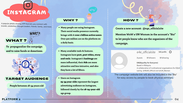 The slide I explain why I use Instagram as one of my platform to promote the online campaign.